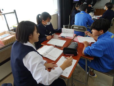分かりやすく指示をすると、生徒達は熱心に話合いを始めました。