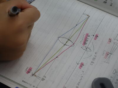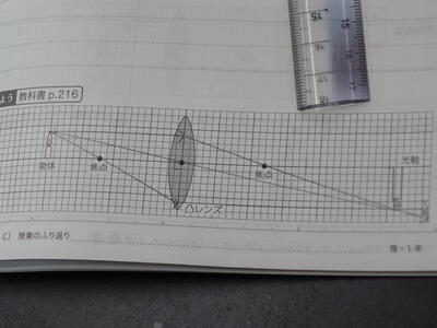 凸レンズを通過する光がどのように像を結ぶのか、作図によって考えました。