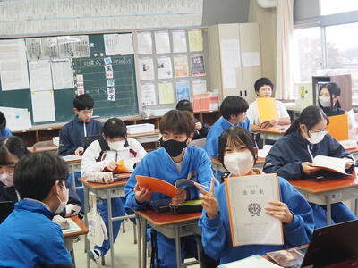 5時間目には担任の先生から通知表をもらい、一喜一憂している様子でした。