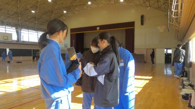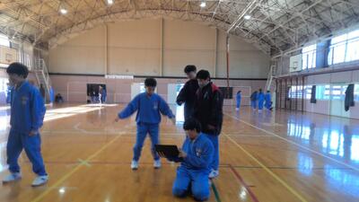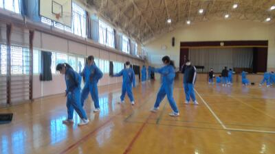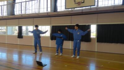 今日の1年生の体育の様子です。1年生は1・2組合同で体育を行っており、現在ダンスに取り組んでいます。