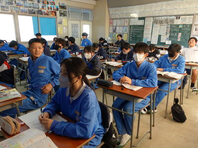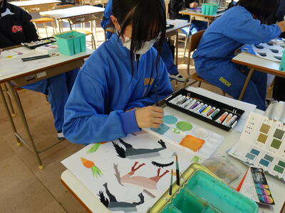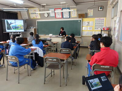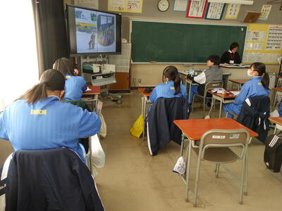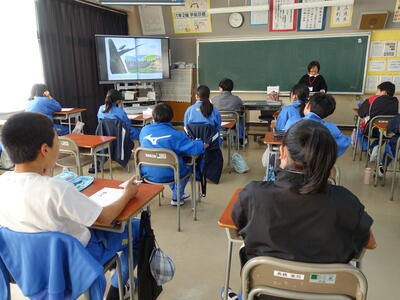 絵本を画面に映しながらの朗読に、生徒達は引き込まれていました。