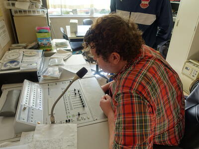 今日の給食時、クリス先生によるDJクリス・ホリデースペシャルを放送しました。