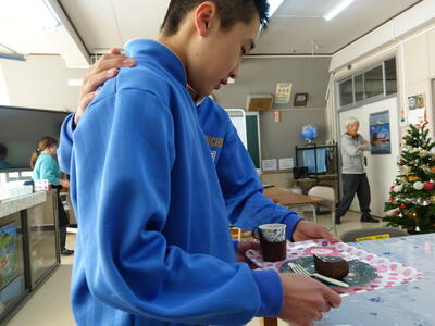 自分たちで作ったガトーショコラとコーヒーや紅茶で喫茶店を実施しました。