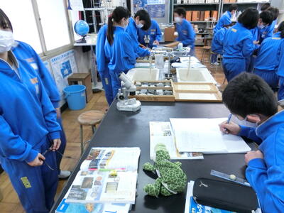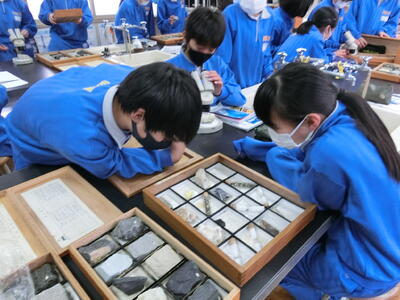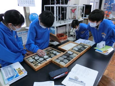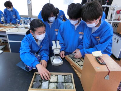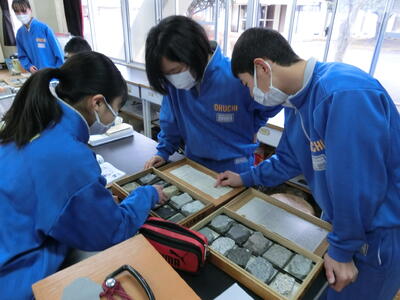 様々な岩石(火成岩・堆積岩)の特徴を観察しました期待・ワクワク