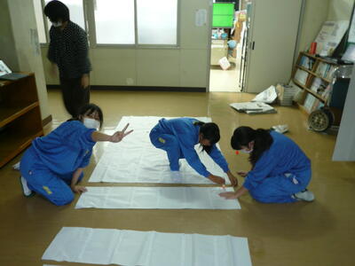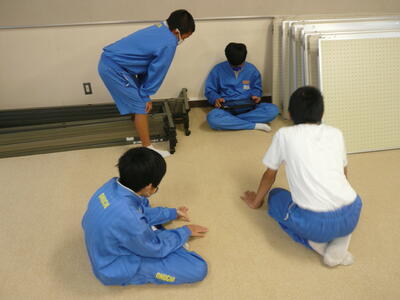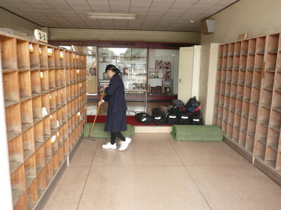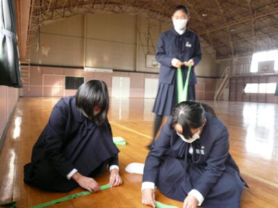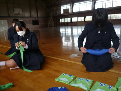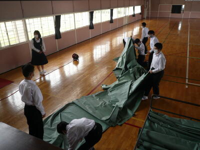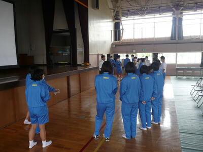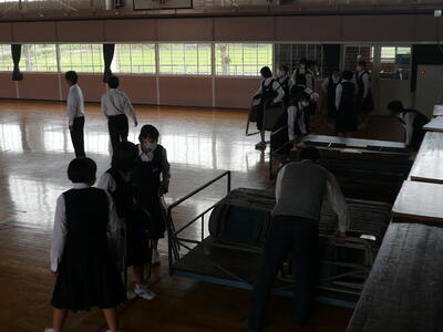 昼休みに、明日の国語研修会のために野球部・サッカー部・バレーボール部員が体育館の準備をしてくれました。