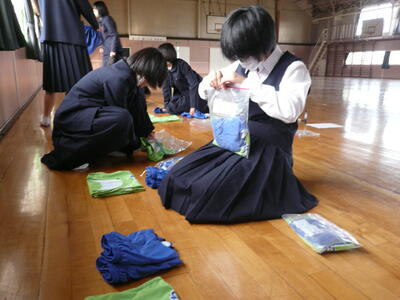 自分たちで使用したユニフォームを丁寧に袋詰めをしました。