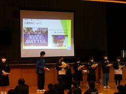 ①『世界人権宣言』の紹介 ②現代の世界で起こっている人権問題 ③人権意識を高めるために大切なことの提案 など、聞きごたえのある発表でした。
