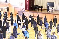 ☆校歌斉唱~指揮 川野辺さん(3年) 伴奏 田口さん(3年)