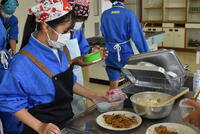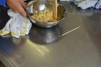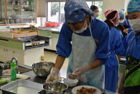 ごはん、牛乳、焼きメンチカツ・ソース、ブロッコリーのごまサラダ、卵とわかめの中華風スープ、アセロラゼリー