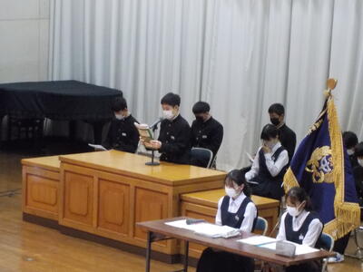生徒総会とは美化委員会や体育委員会、保健委員会などの各委員会の人たちが意見を提案し、
