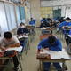 教室前の廊下には、高校ごとの過去問題集を置き、貸し出しています。