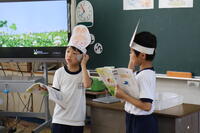 また、1年生の授業では、音楽の時間「たなばたさま」の歌を歌ったり、曲の歌詞の意味を考えたりして、活動しました。その後、自分たちも願い事を考えて、短冊に書きました。
