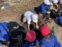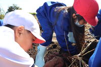 2年生が昨年の経験から、1年生に掘り方を教えてくれました。