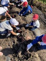 土から大きなサツマイモが出ていて、子どもたちは「いっぱいあるよ!」と大きな声で教えてくれました。