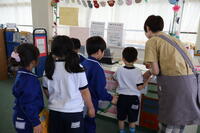 教室に入るときにあいさつをすることや自分の名前を聞こえる声で言うこと、廊下の右側を静かに歩くこと、先生の話を目で聞くことを目標に頑張りました。