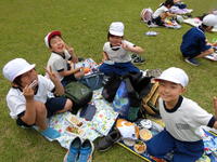 美味しいお弁当の後は、公園の遊具で楽しく遊び、笑顔で学校に帰りました。