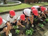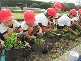 2年生が2校時に、1年生が4校時に、北陵高校産のパンジーとチューリップの球根を植えました。「大きくなってね」などの願いを口にしながら植える子供がいました。