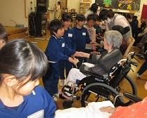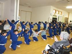 3年生がすこやか大内を訪問しました。利用者の方々に歌や合奏を披露したり、手遊び「茶摘み」