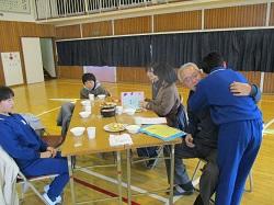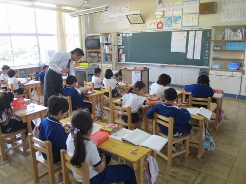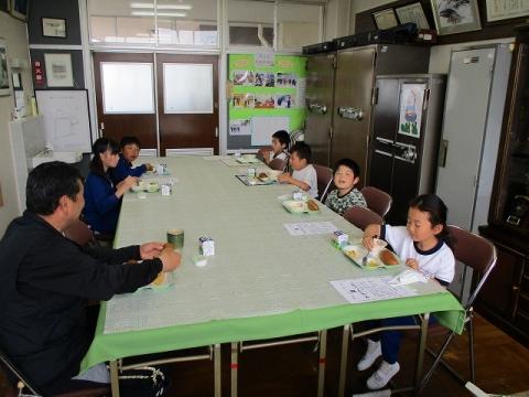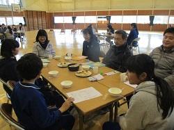 指導者交代給食では、いつも一緒に給食を食べている担任の先生とは違う先生達と給食を食べました。会話も弾み、楽しい給食の時間になりました。