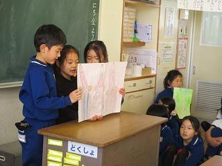 人権教室では、法務局支局長、人権擁護委員、福祉課職員の皆様が来校され、人権講話や紙しばいをしてくださいました。紙しばい「白い魚とさめの子」を見て、命の大切さや思いやりの心、よさを認め合うことの大切さなどを考えたり感じたりすることができ、意見を発表していました。