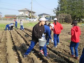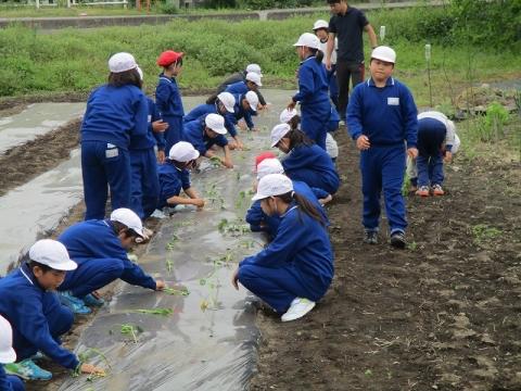 3時間目、5年生と3年生はさつまの苗も植えました。