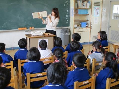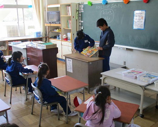 6年生は初めての読み聞かせ、1年生はよくお話を聞いてくれました。