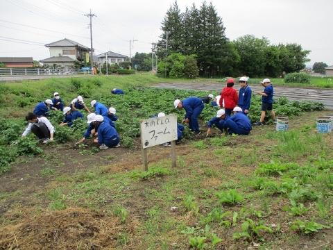 業間の時間を使って全校生でクリーン作戦をしました。1・2年生は花壇、3・4・5年生は校庭、6年生は学校農園「グングンファーム」の除草作業をしました。