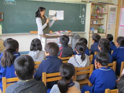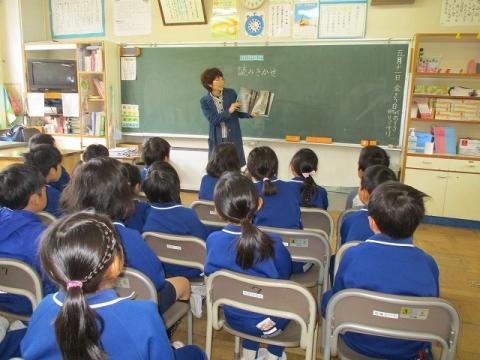 8時からの読書タイムに読み聞かせがおこなわれました。今年は、9名の方が協力してくれました。子どもたちは目を輝かせてお話を聞いていました。