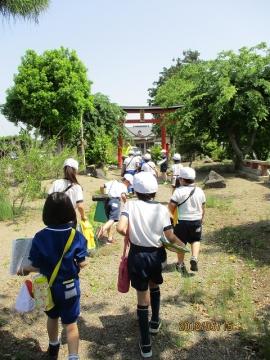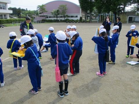 1回目の校外学習をしました。学校の東から北にはどのような施設があるか、歩きながら白地図にまとめます。付き添いボランティアの協力をいただき、安心して学習に行けました。