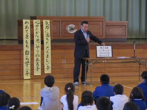 児童指導主任の話などがありました。また、転入児童の紹介も行われました。3学期も元気いっぱい、