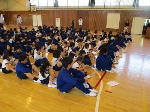 25日の音楽集会に向けて、全校合唱♪Smile Again ♪を練習しました。