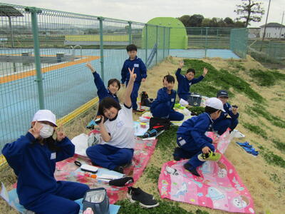 お弁当の日。天気が良かったので、外で食べることにしました。