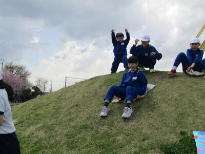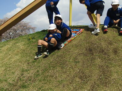 おいしいお弁当を食べた後は、レジャーシートで芝滑りをしたり遊具で遊んだりして、