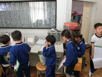 1年生は始めての場所に入るときに少し緊張している様子が見られました。そんな時は2年生がお手本になって、職員室などに入るときの言葉を教えてくれました。
