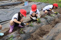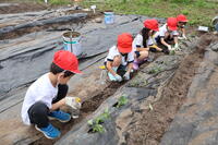 子どもたちは、「大きくなるかな?」と言いながら、たくさんお水をあげていました。
