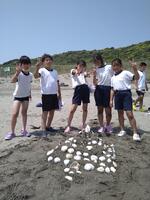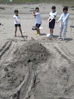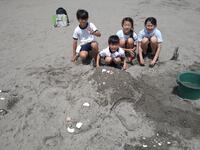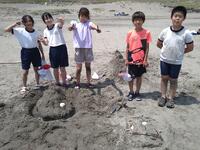 20日の午前中は、砂の造形を行いました。どの班も芸術的な作品ができました。お昼ご飯はカレーでした。みんなモリモリ食べました。午後の貝殻キーホルダーづくりも楽しみです。