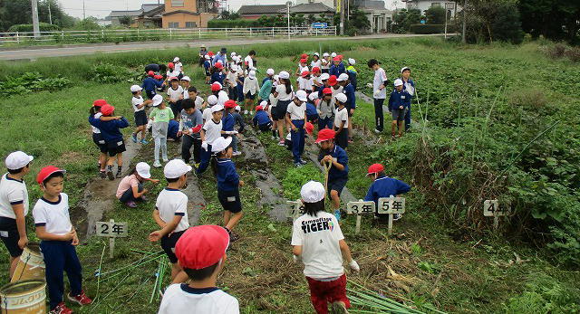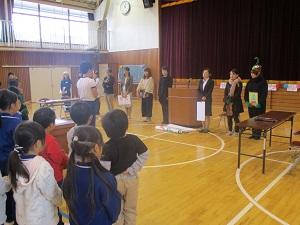 クイズや紙芝居で紹介するグループや、えさやり体験ができるグループがあり、1年生たちは楽しみながら、生き物について学ぶことができました。授業の後、生き物たちに「さようなら」を言って、原っぱや川に返しました。