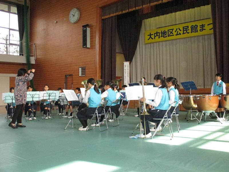 10月30日(日)の公民館祭りでは、輪投げ、金管バンドの演奏、作品展示などが行われました。焼きそば、カレー、ヨーヨーなどのお店もあり、子どもたちは一日、楽しく過ごしました。