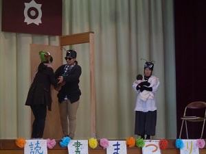 体育館で、読書祭りが行われました。本をたくさん読んだ児童への多読賞の表彰や、本の紹介が行われました。