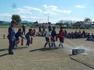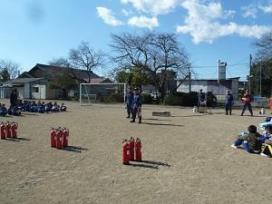 今回の避難訓練では、火災を想定し防火シャッターを下ろしての訓練が行われました。児童たちは「お・か・し・も」の約束を守り、安全に避難することができました。消火訓練では、消防署の方の指導で、水消火器を使った訓練を行いました。