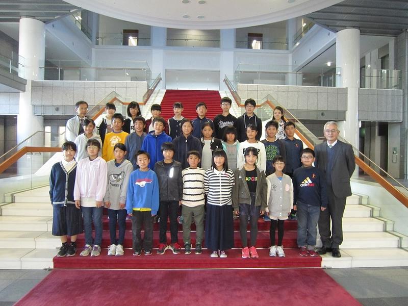 9月30日に来日した北京第五中学校の先生と生徒の歓迎会が大内中で開かれ、大内中学校区3校の6年生が出席しました。