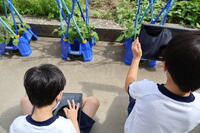 生活科の時間には、朝顔の様子をカメラで撮影して記録することもできました。