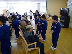 4年生がすこやか大内を訪問しました。歌やダンスの発表をした後に、利用者の方々とお手玉やけん玉などで、交流を深めることができました。