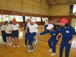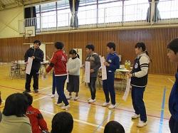 1年生を迎える会では、全校生徒が縦割り班に分かれ楽しいゲームを行い、1年生をあたたかく、迎えることができました。あっち向いてホイや、ハードルボーリング、フラフープリレーなどの競技では、歓声や拍手が起こるなど、とても盛り上がりました。