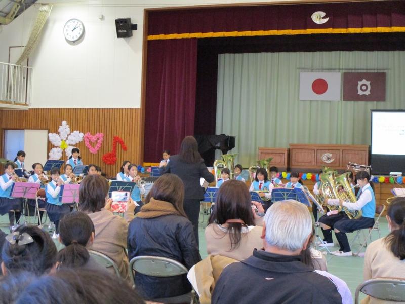 金管バンド部のフェアウェルコンサートが体育館で行われました。6年生の最後のステージです。全員合奏あり、アンサンブルありで聴き応えのあるコンサートでした。6年生が感謝や今後の抱負を一人ずつ発表し、後輩にバトンを渡しました。アンコールの学園天国では、指揮者なしで、プレーヤーだけでしっかりと合わせ、堂々と演奏し頼もしさを感じました。ご尽力くださった保護者会の皆様に感謝いたします。