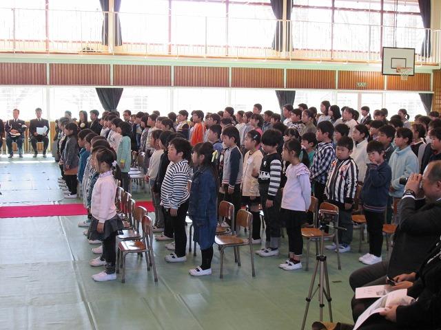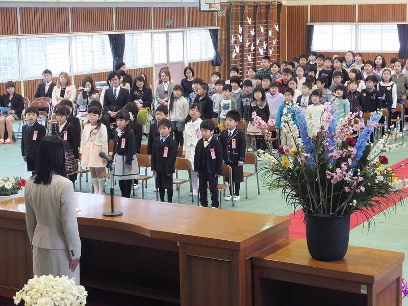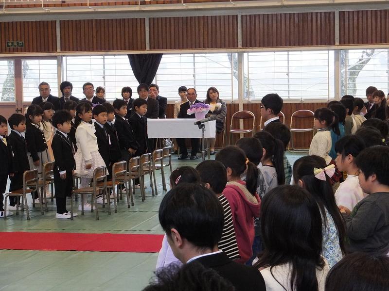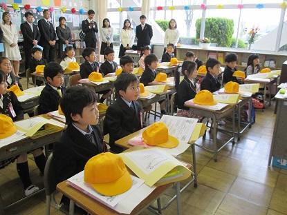 みんな大きな声で返事をして、校長や来賓の方々のお話をしっかりと聞くことができ、とても立派でした。在校生は、歓迎の気持ちを歌に込め、声高らかに校歌を歌いました。