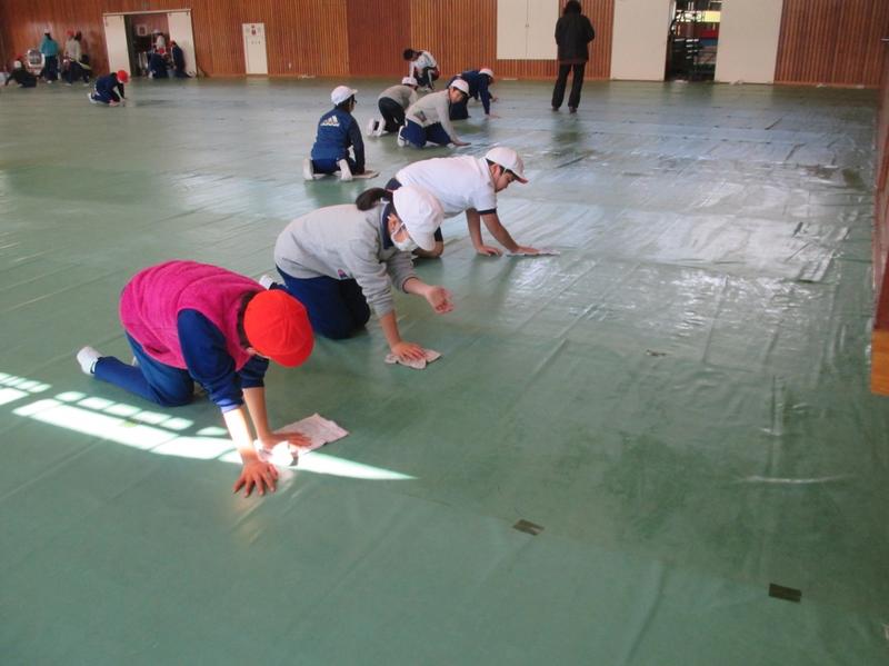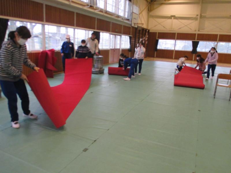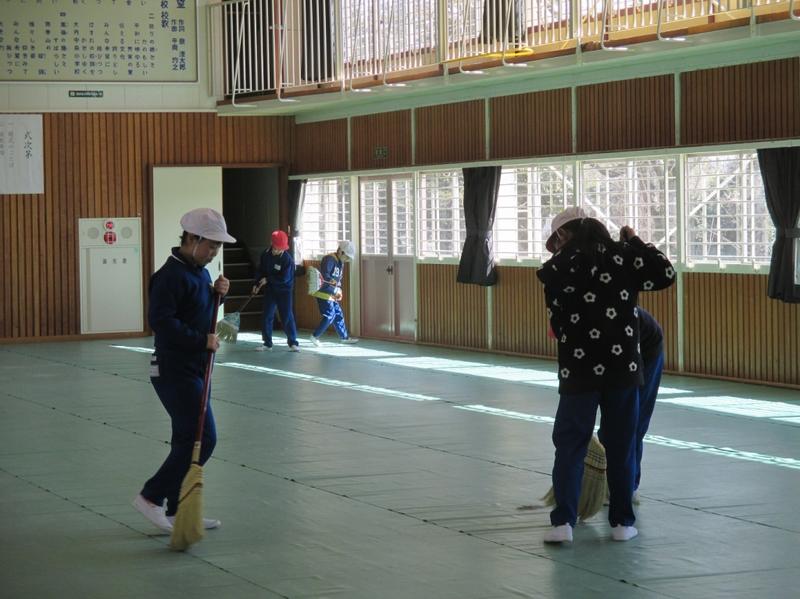 4・5年生が卒業式の準備をしました。体育館や校舎内の掃除、式場づくりなどをがんばりました。気を利かせて働くことができ、短時間で明日の準備が完了しました。