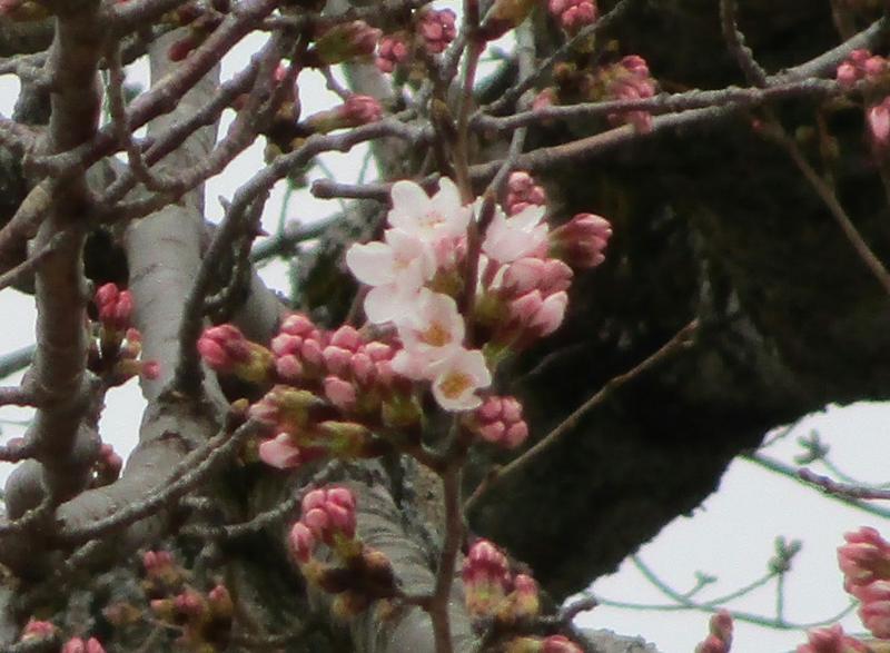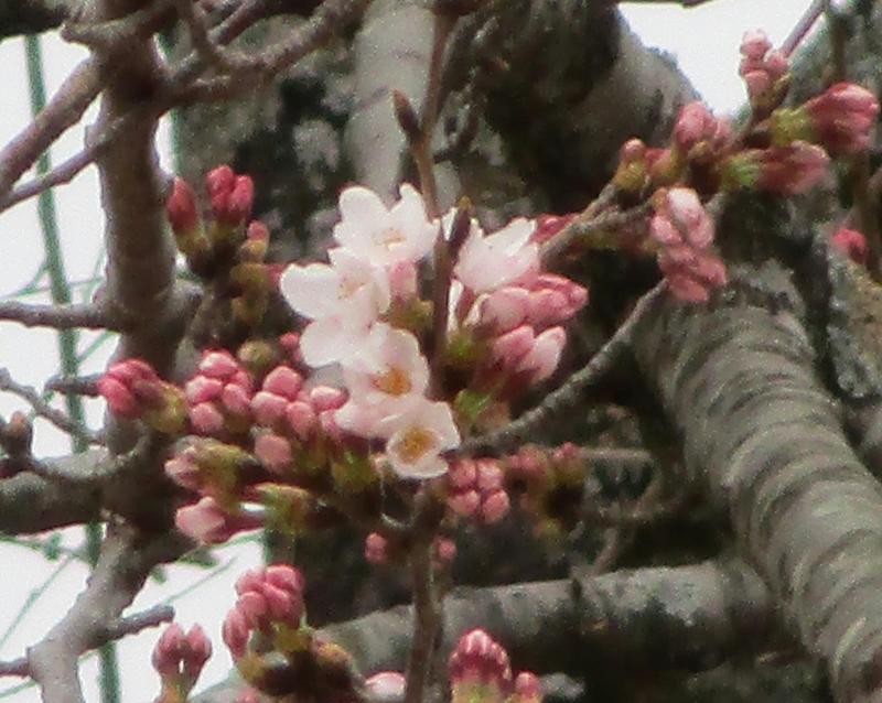 ここ数日の暖かさで堅かったつぼみが大きく膨らみ、桜が開花しました。