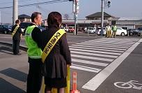初日の4月6日は、飯貝交差点で出陣式が行われました。市長様、警察署長様、教育長様をはじめ、交通安全協会の方々、地域の方々が交通指導をしてくださいました。