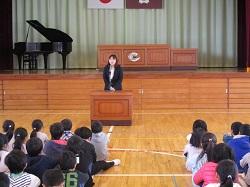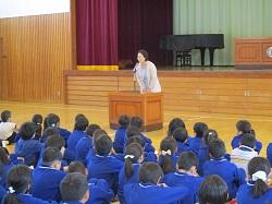 全校朝会では、「決まり」と「気配り」についての校長講話がありました。